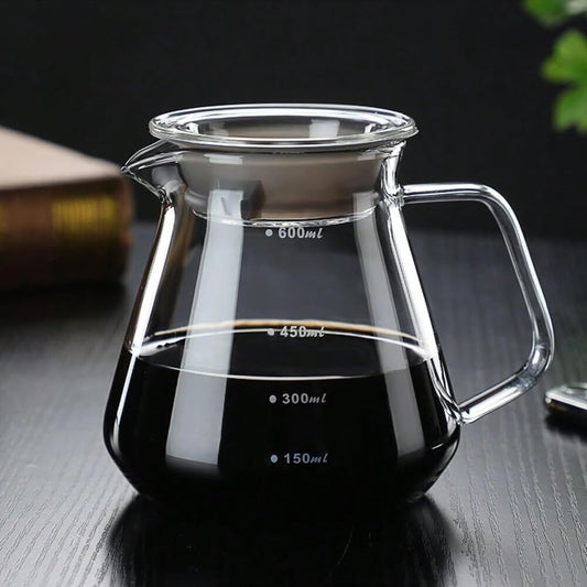 Borosilicate Glass Coffee Server Pot For Pour Over Coffee Maker Square Handle 600 ML, Clear